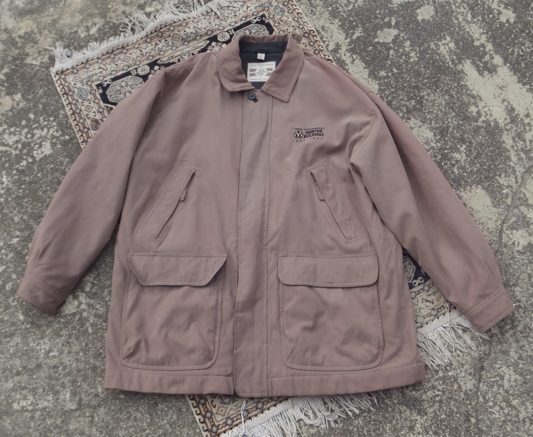 90s00s destination work jacket 企業ロゴ ワークジャケット ブラウン 比翼 古着 ゆるだぼ 春秋 XL