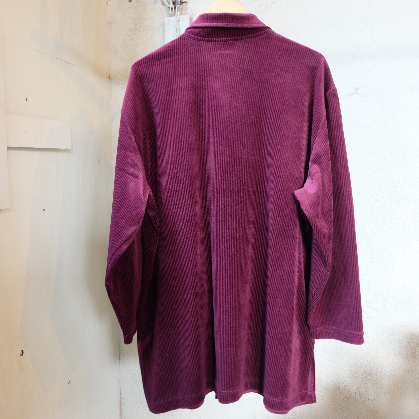 このhanes velor shirtは、アメリカ製の高品質なベロア素材を使用しています。プルオーバータイプのシンプルなデザインながら、細部にまでこだわった作りが魅力です。柔らかな肌触りで着心地も抜群。カジュアルな場面にはもちろん、少しドレスアップした場面にも活躍してくれます。