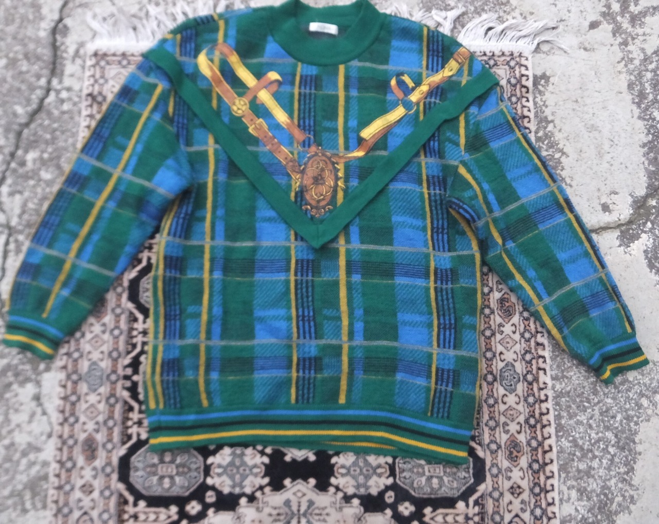 ラグジュアリープリントのチェックパターンニット。