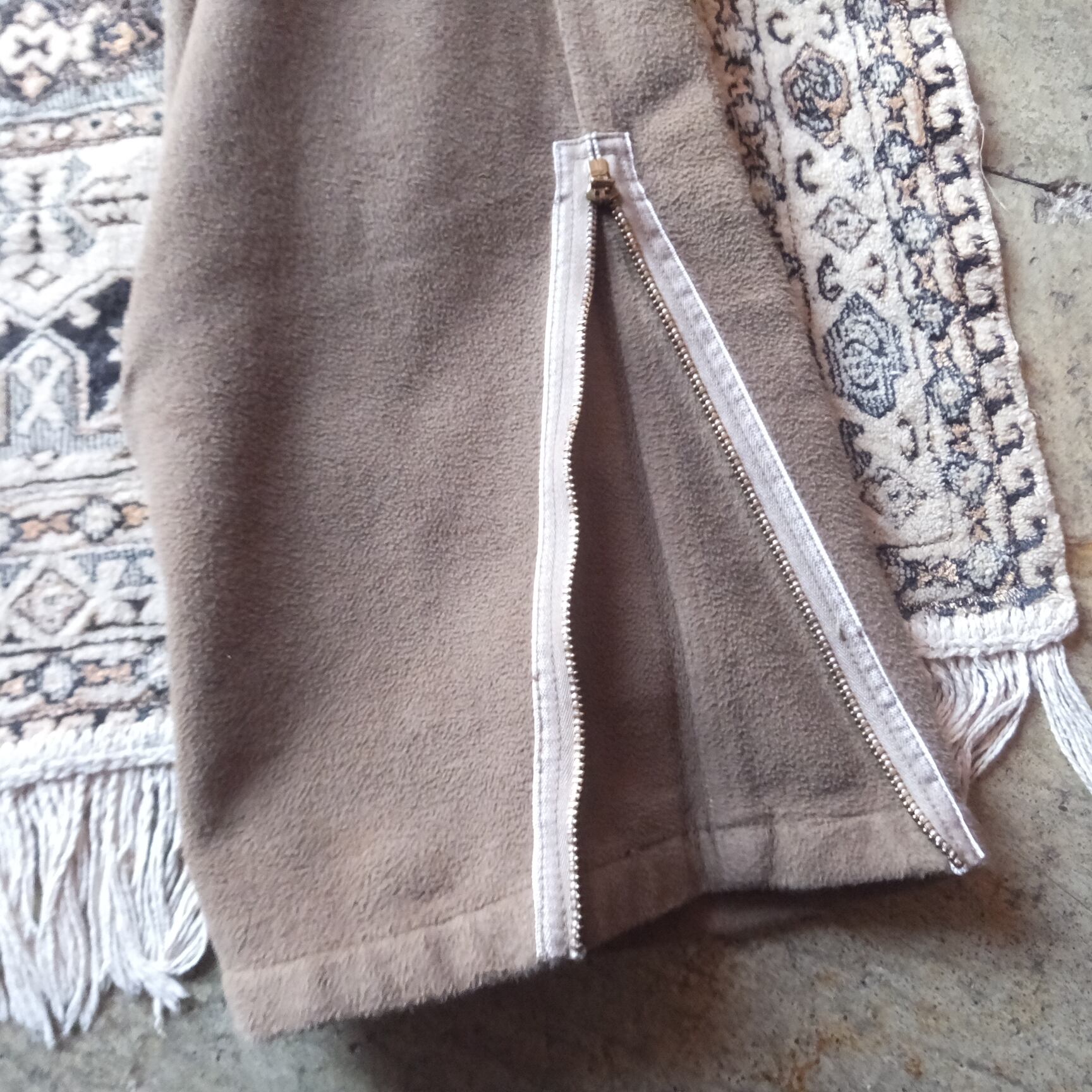 裾はパラシュートパンツの様にジップがついております。